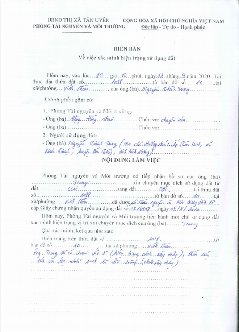 - Đơn cam kết chuyển thổ cư( được giảm 10% giá đất).