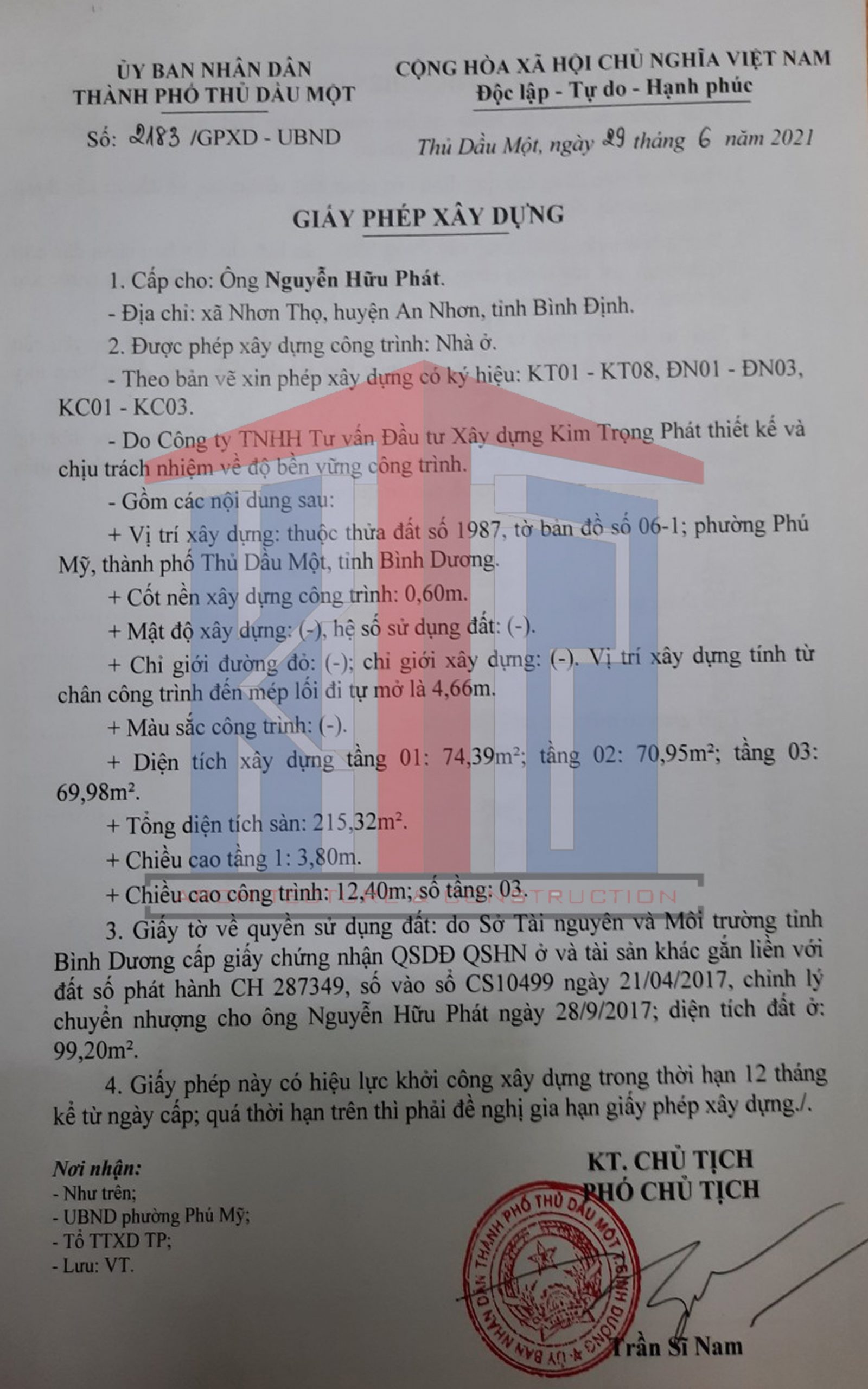 Dịch vụ xin giấy phép xây dựng nhanh nhất khu vực Phú Mỹ, Thủ Dầu Một của Kim Trọng Phát: