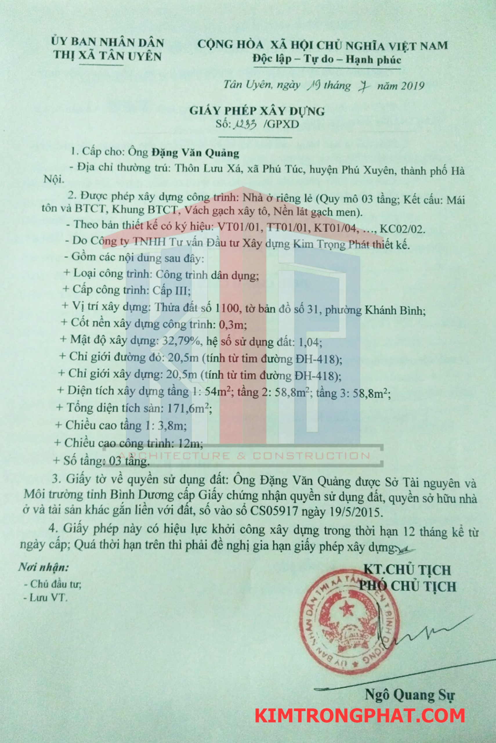 Công Ty TNHH Kim Trọng Phát chuyên làm thủ tục xin phép xây dựng tại Tân Uyên tỉnh Bình Dương. xin phép xây dựng bình dương kim trọng phát của Chúng tôi là cung cấp dịch vụ uy tín – chất lượng – nhanh chóng – chi phí thấp.